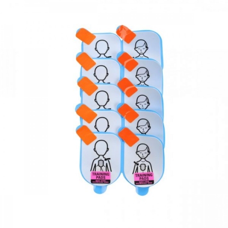 5 sets Defibtech Lifeline kindertrainingselektroden. De trainingselektroden zijn door middel van klittenband gemakkelijk te vervangen en zijn uitsluitend geschikt voor gebruik tijdens trainingen.