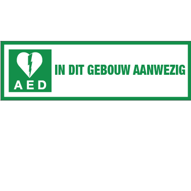 Sticker AED in gebouw aanwezig (10x30cm). € 7,50