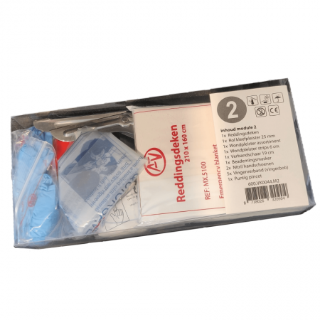 Module 2 instruments and protection for the ATV first aid kit. Module 2 is the module that contains instruments/accessories and materials for (wound) protection.