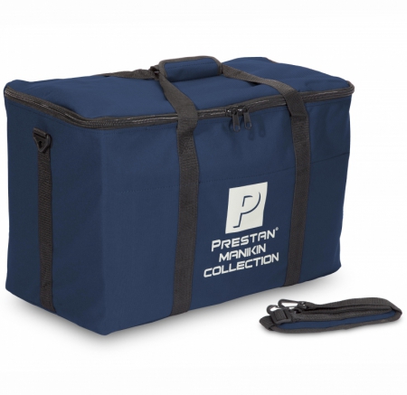Deze sterke nylon draagtas is op maat gemaakt voor de Prestan Collection. De tas biedt voldoende ruimte om de volwassene torso, kind torso en baby reanimatiepop in hun geheel op te bergen. Er zit een extra onderscheidingstuk in om op de torso's vast te maken waar de baby reanimatiepop op geplaats kan worden. Hierdoor verschuiven de reanimatiepoppen minder in de tas. Verder is er in het onderste grote vak voldoende ruimte om setjes longzakjes en Faceshields in op te bergen, wanneer dit wenselijk is.