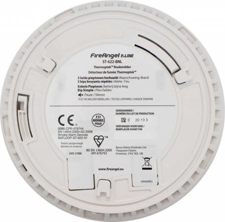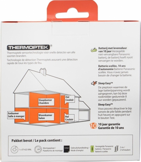 De FireAngel ST-622-BNLT rookmelder heeft een speciale THERMOPTEK® sensortechnologie waardoor rook en vuur nog sneller worden opgemerkt. Door de verzegelde niet-vervangbare batterij hoeft de batterij nooit vervangen te worden.